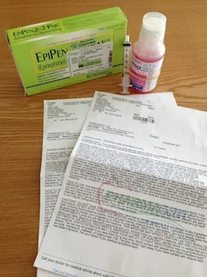 処方された薬は、アレルギー対策の飲み薬(毎日朝晩1回ずつ飲むものと、今回の機内で起きたような事態があった時の非常用2種類)とエピペン2本(アナフィラキシーが起きた時に使用する注射)でした。